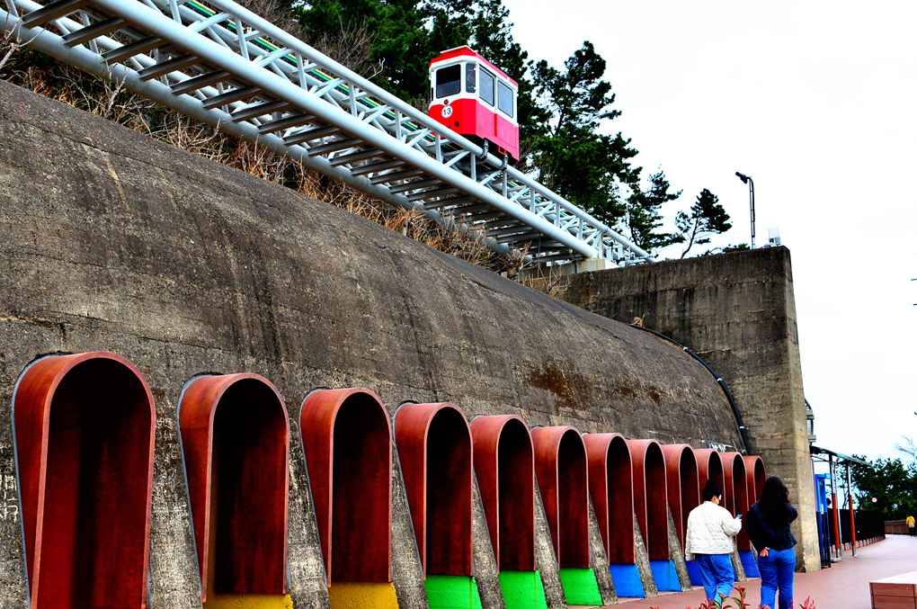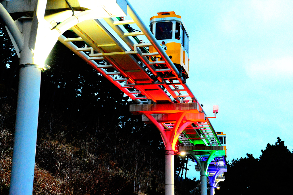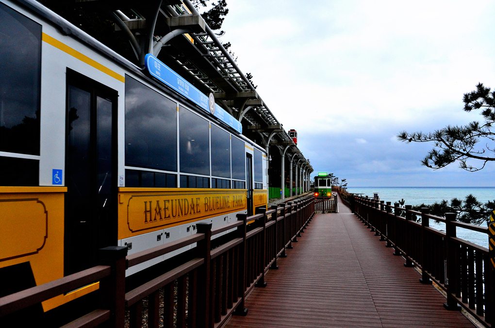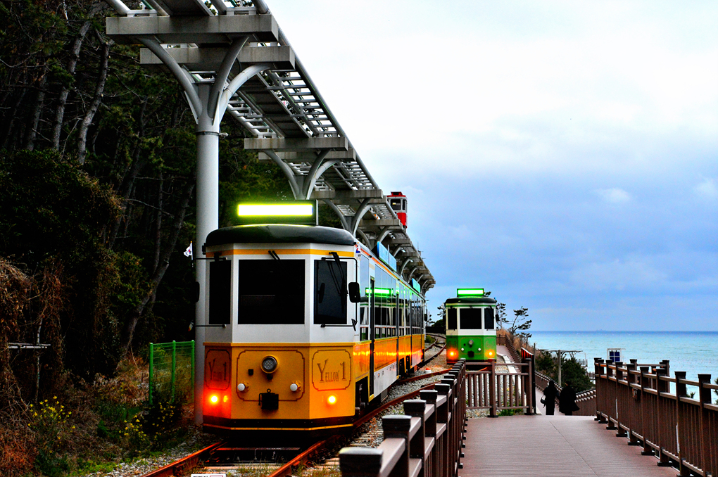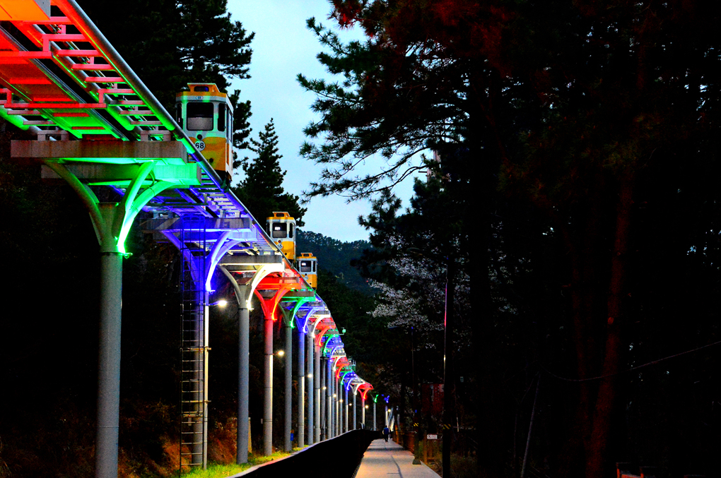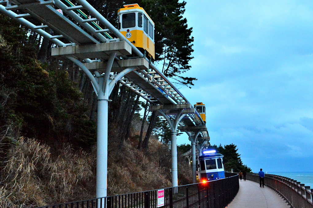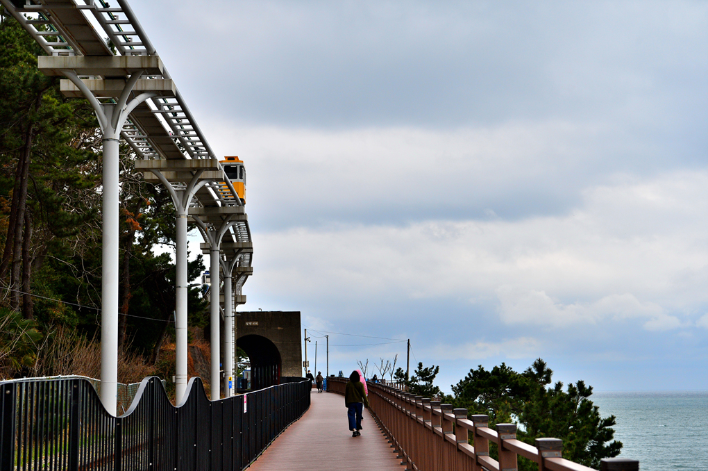 산책로 옆을 지나가는 스카이 캡슐과 열차도 아름다운 풍광을 안겨 준다.