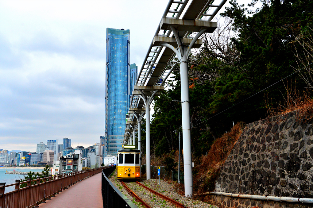 해운대 블루라인 파크의 산책길에서 바라본 해운대 쪽 풍경이다.