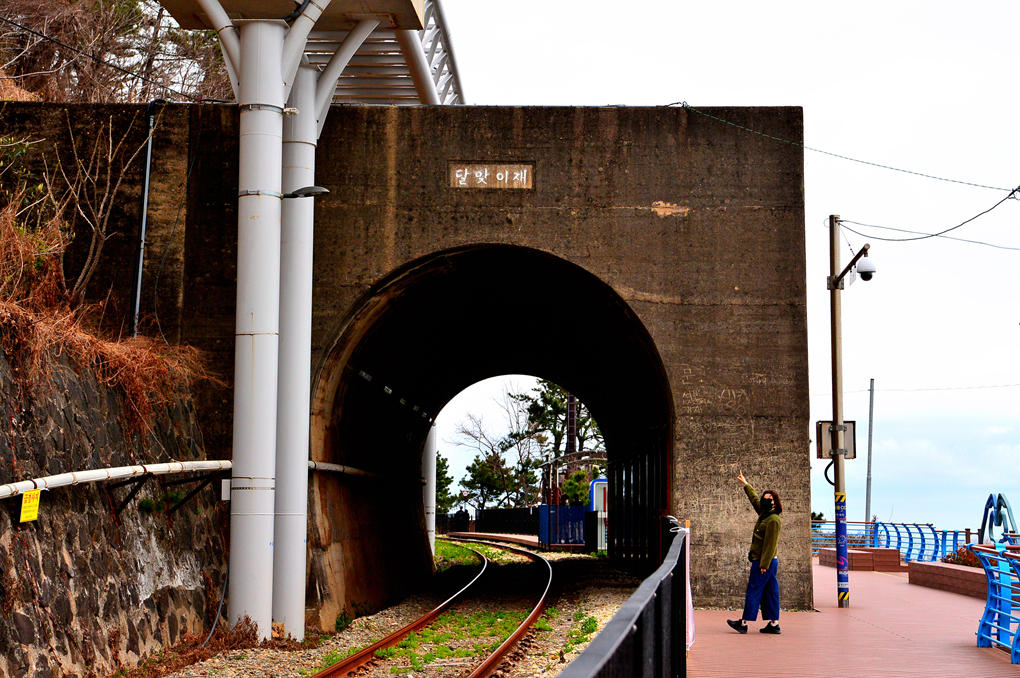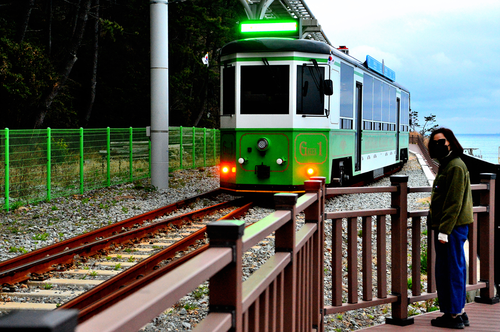 달맞이재로 들어서는 열차가 아름다운 풍경을 연출해 준다.
