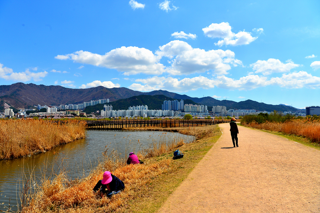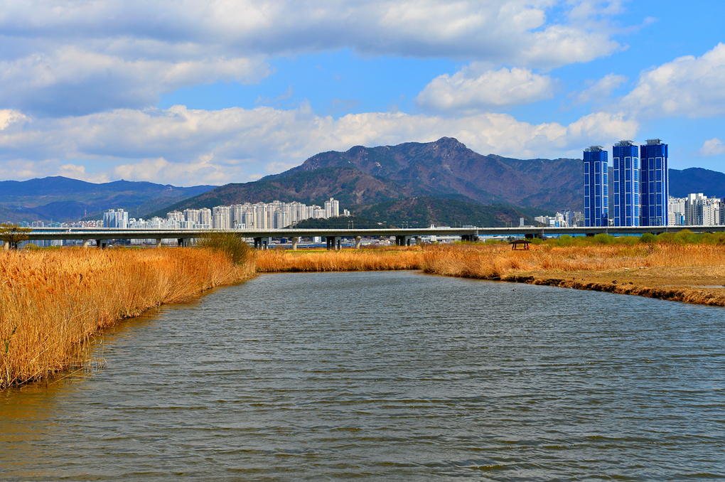 습지의 갈대와 도시의 건물들이 어우러진 풍경도 아름답기만 하다.
