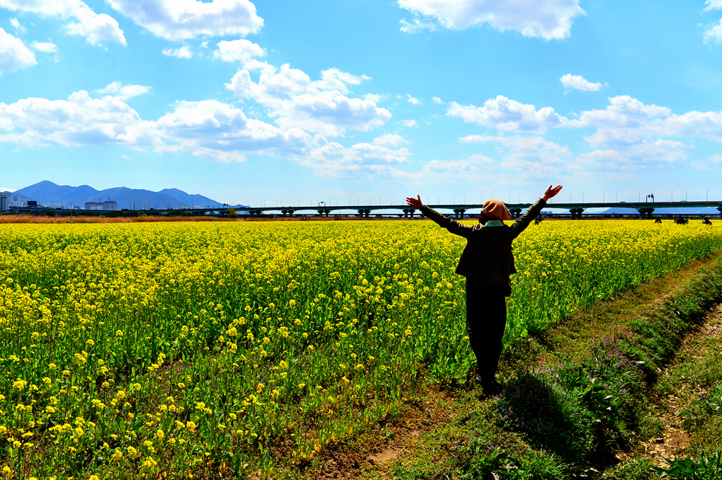 참으로 오랜만에 본 아름다운 유채꽃밭이다.