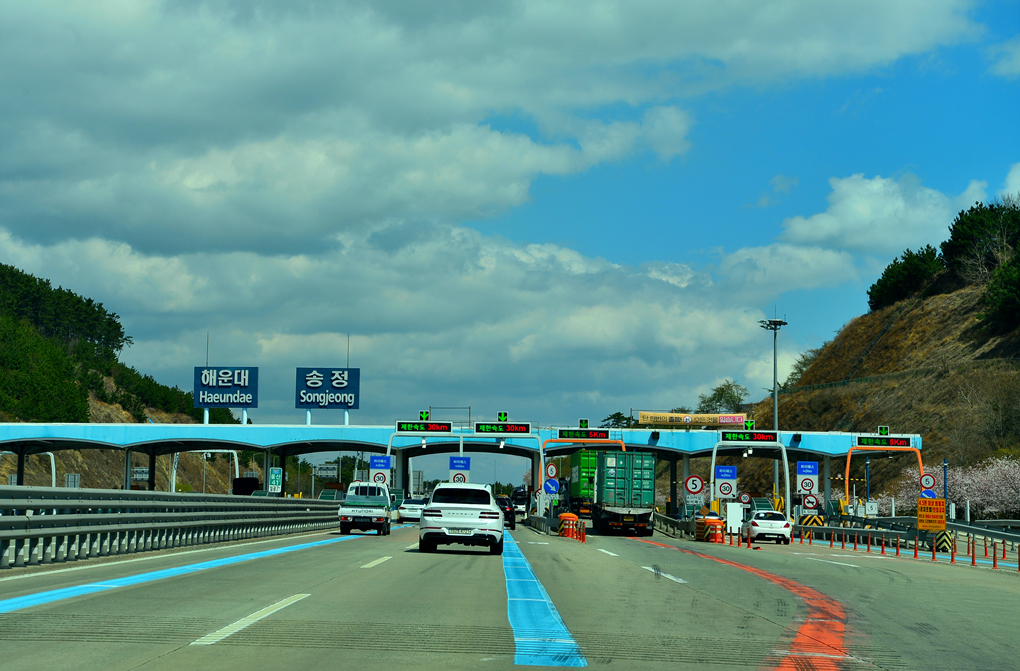 고속도로 톨게이트를 들어선다.