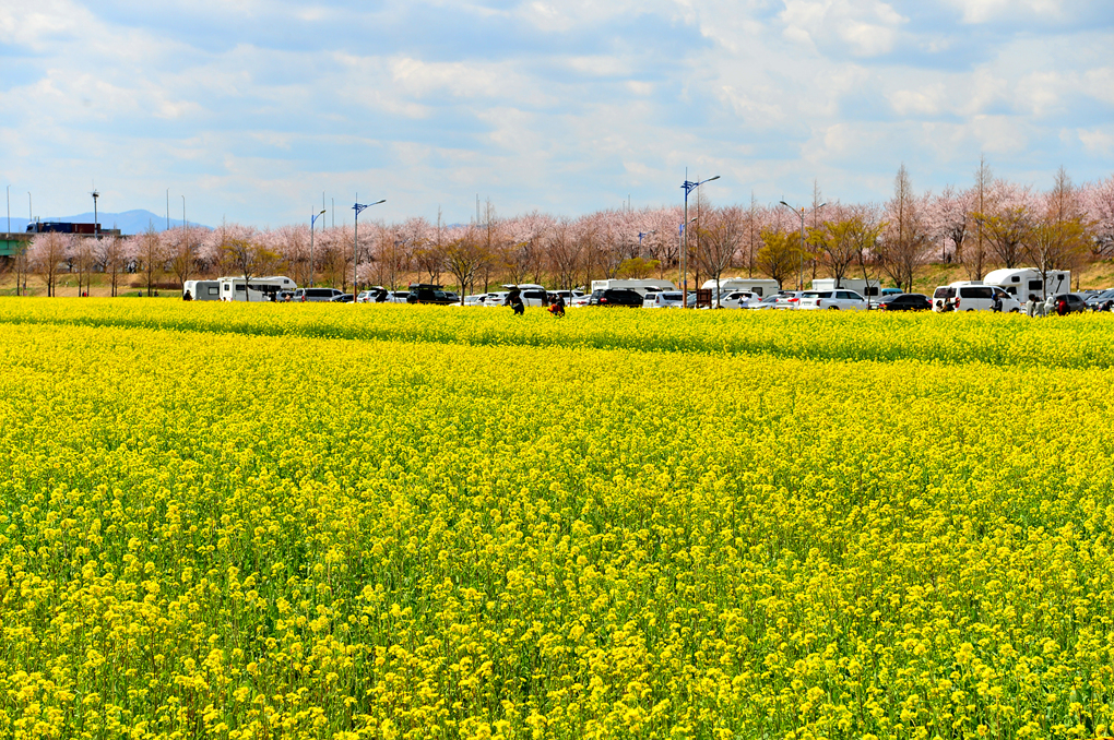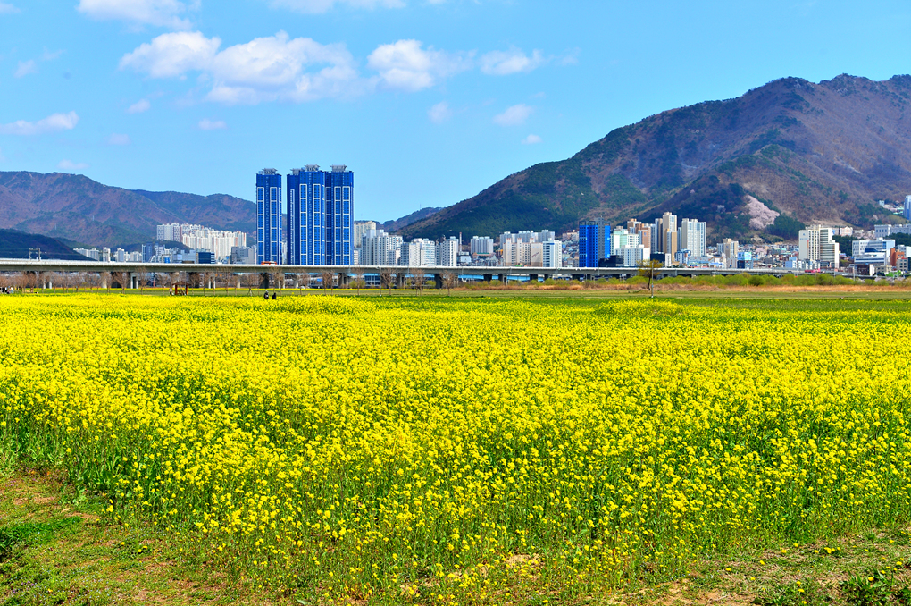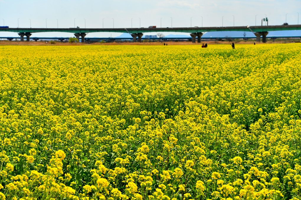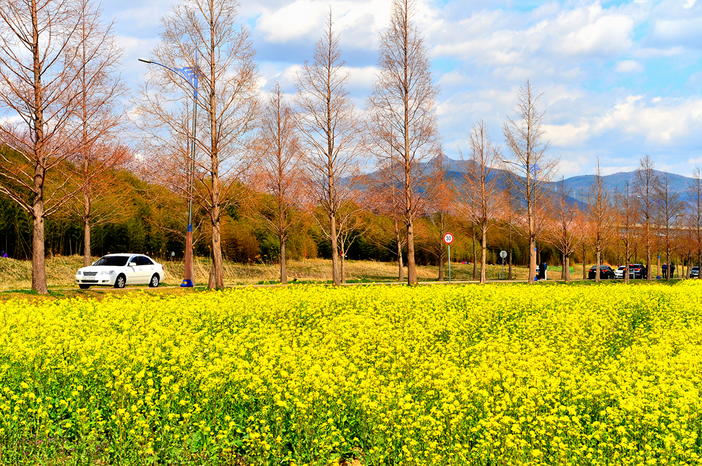 드넓게 펼쳐진 대저 생태공원의 유채꽃밭이다.