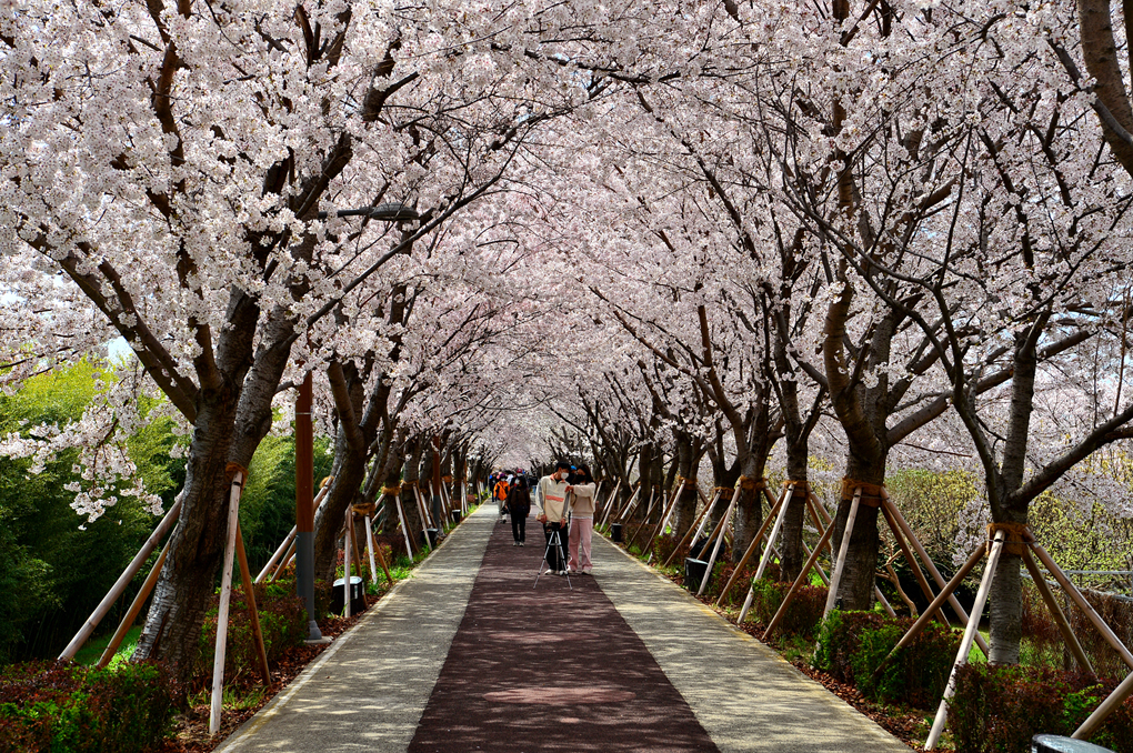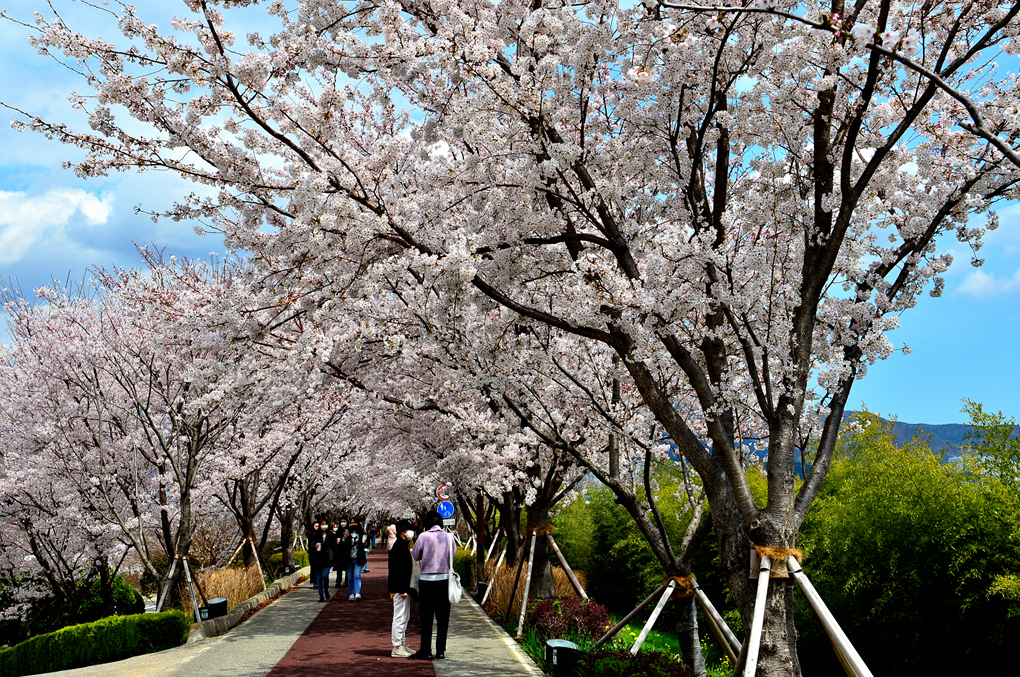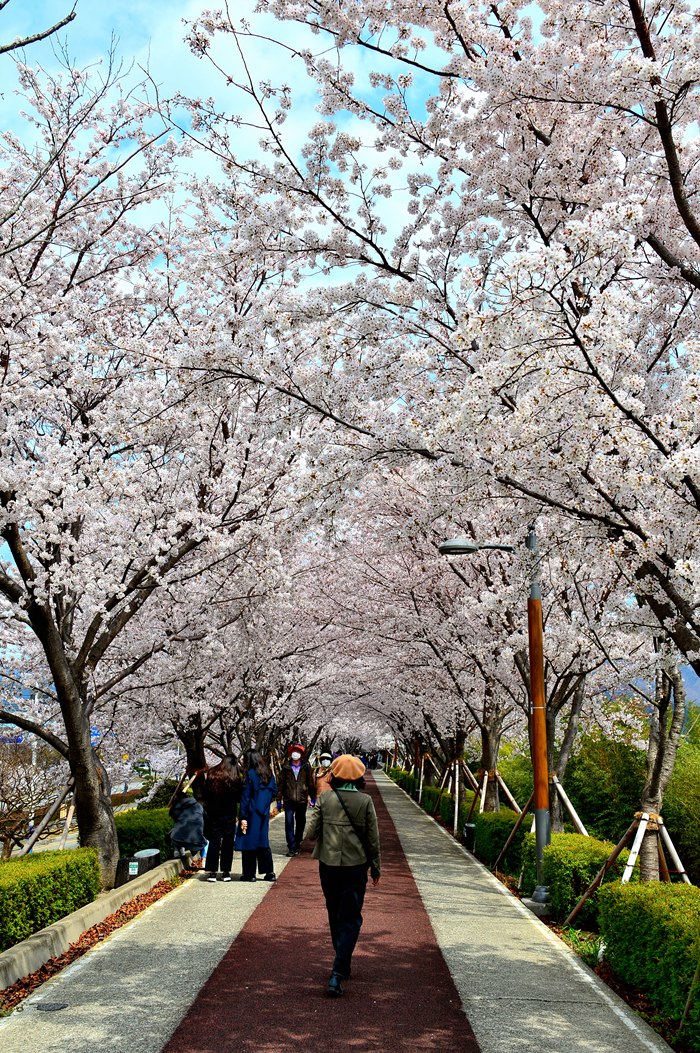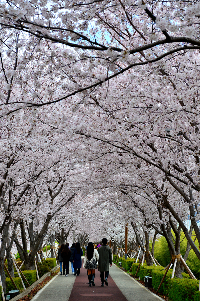 만개한 벚꽃 터널 사이를 거닐어 본다.