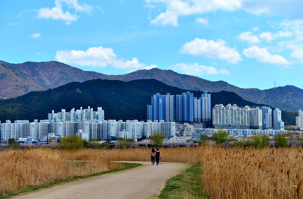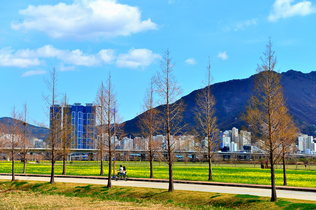 잘 만들어 놓은 산책로와 도시의 고층 빌딩이 어우러진 풍경도 멋지다.
