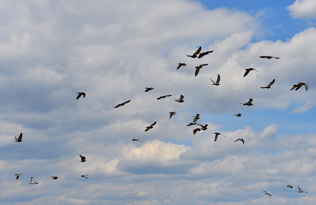 갑자기 한 무리의 새떼가 날아 오른다.