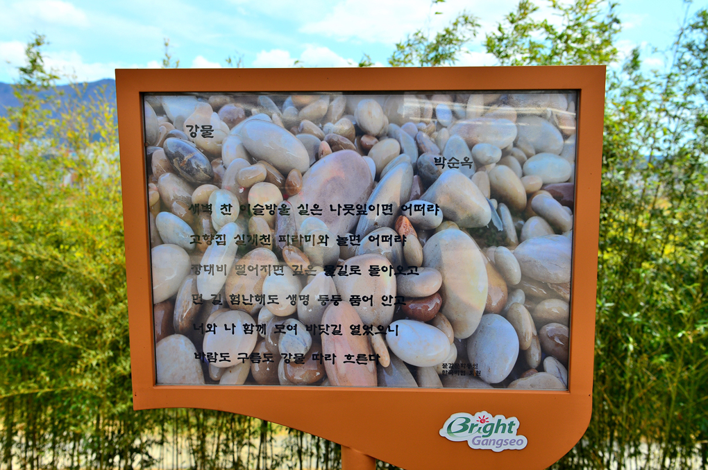 강둑에 세워놓은 시를 보고 잠시 시심에 젖어 보기도 하고~