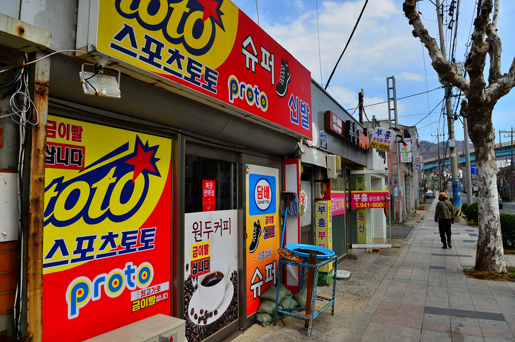 고가다리 아래를 통과하여 시가지로 향하는 중이다.