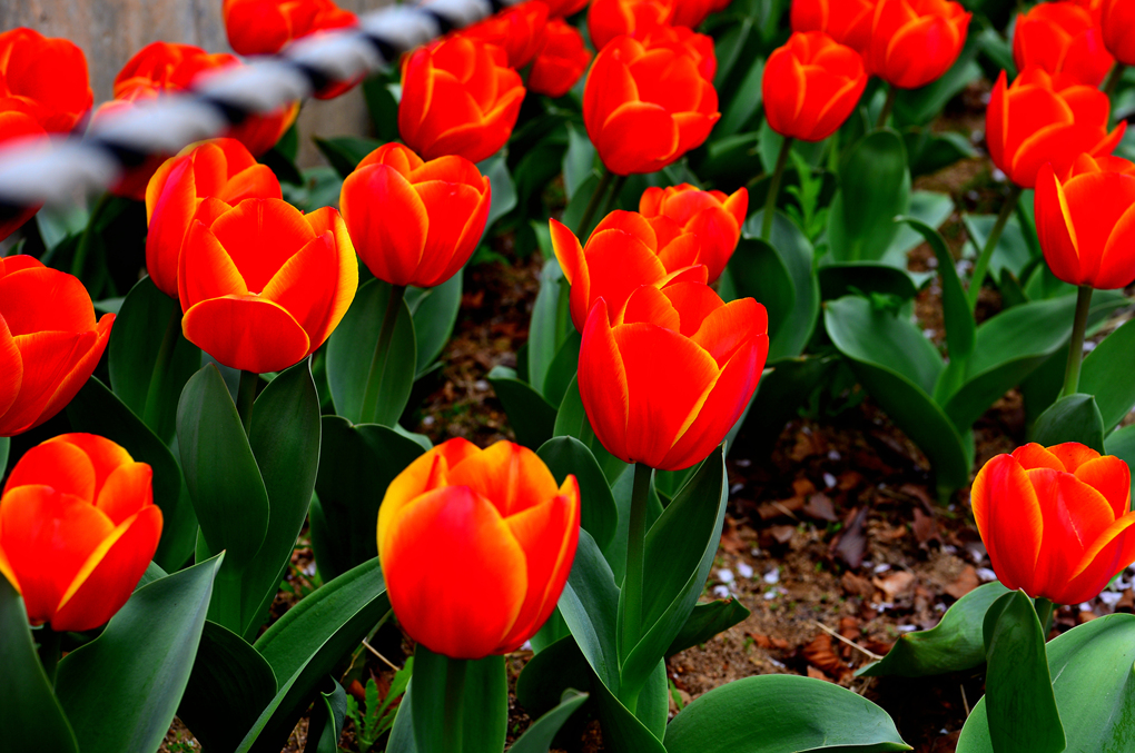 도로 옆 좁은 공간에 심어 놓은 아름다운 튤립 모습이다.