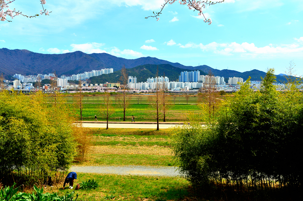 둑길에서 내려다 보이는 대저 생태공원의 풍경이고~