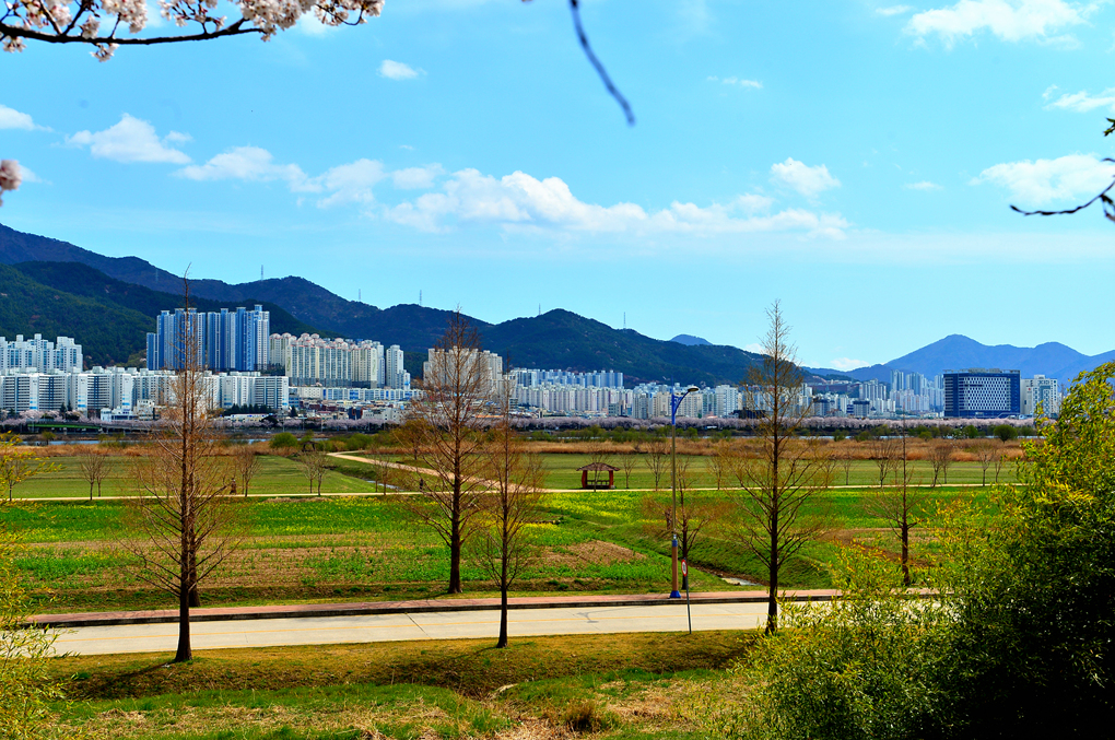 둑에서 보이는 한쪽에는 대저 생태공원이 있고~