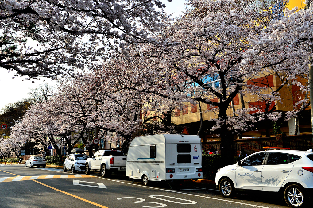 벚꽃의 명소답게 가로수부터 공용주차장까지 모든 거리가 하얀 벚꽃들로 넘쳐난다.