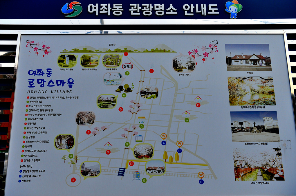 여좌동의 명소들을 소개하는 안내판도 세워져 있다.