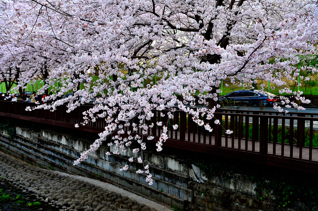 천변에 가득한 아름다운 벚꽃에 이끌려 계속 길을 이어간다.