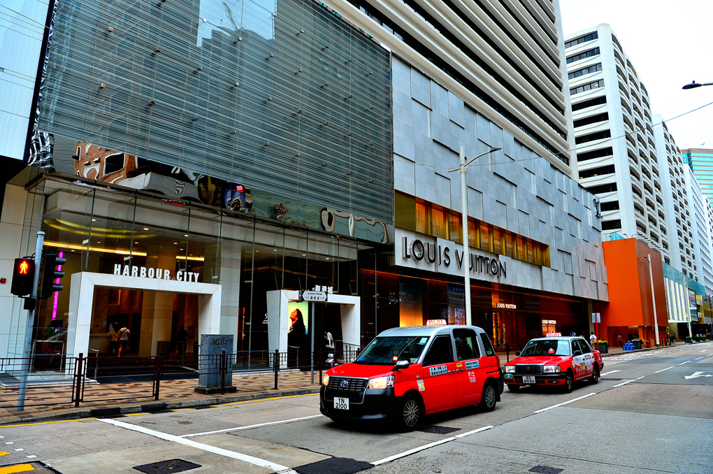 도로의 한쪽 면을 차지하고 있는 하버시티 앞을 지나는 스타페리 선착장에서부터 북쪽으로 곧게 뻗은 캔톤 로드 Canton