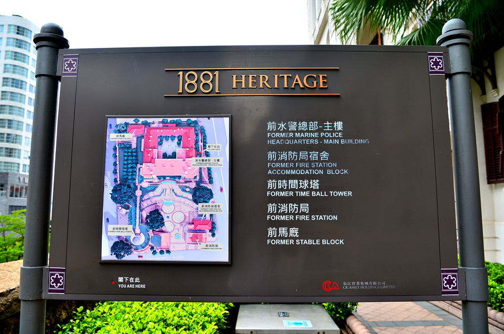 1881 Heritage는 1884년 완공돼 1996년까지 홍콩 해양 경찰 본부로 사용되었던 건물로 현재는 명품 쇼핑과 파인 다이닝이
