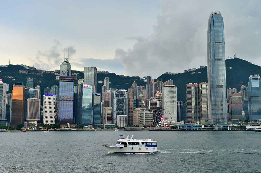 침사추이 시계탑 바로 앞의 침사추이 스타페리 선착장과 그 건너편 홍콩섬 모습이다.