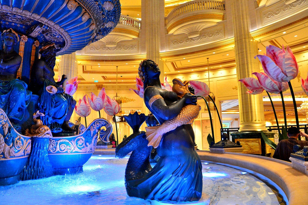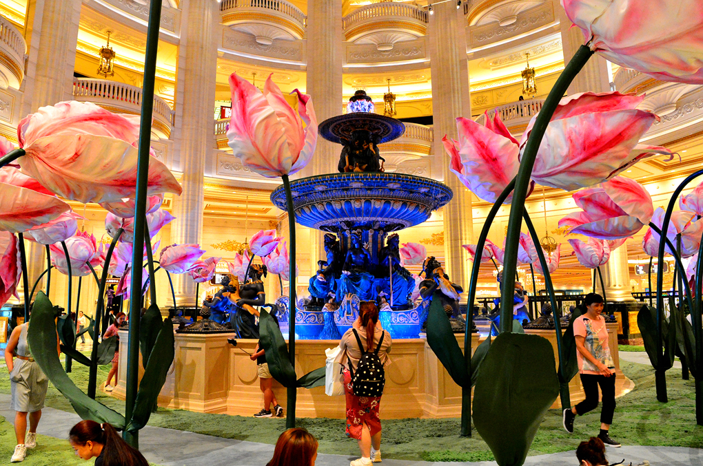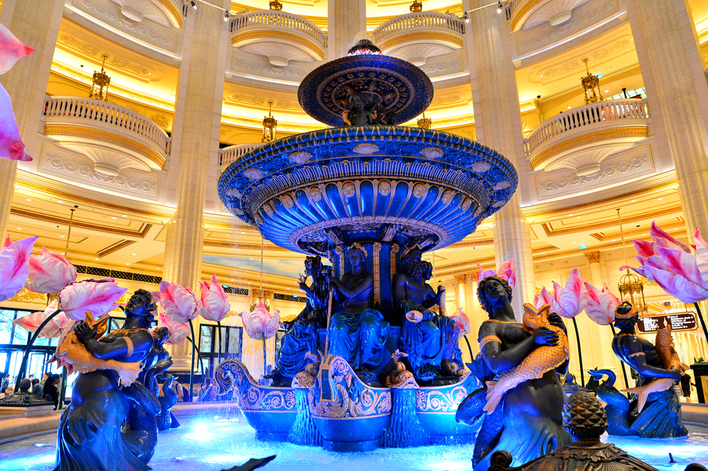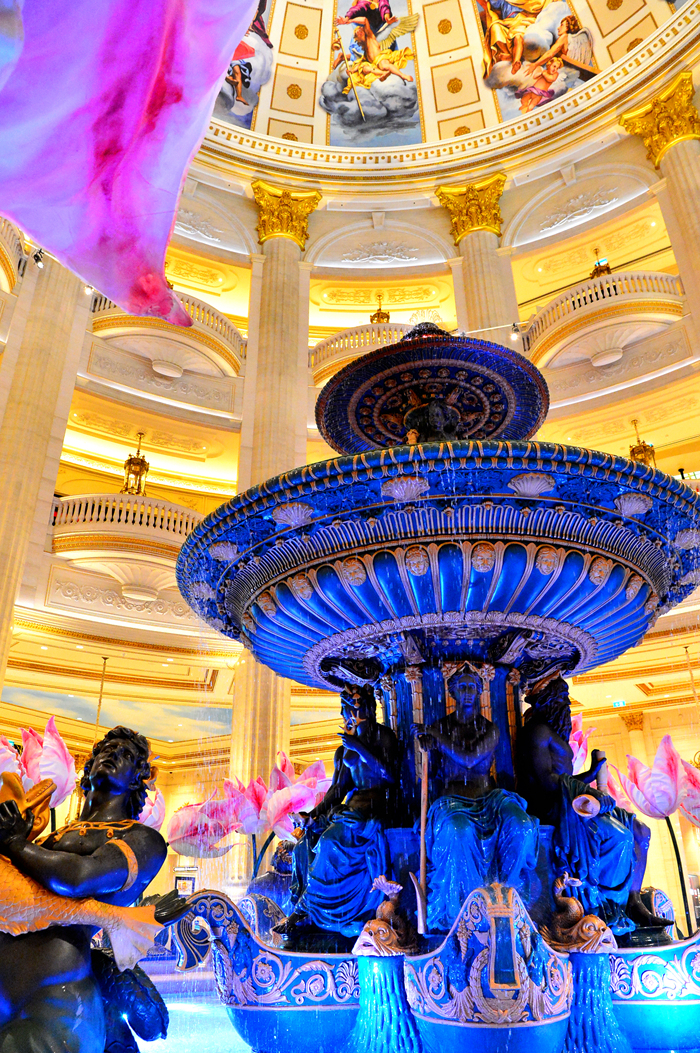 상점들을 지나서 만나게 되는 로비의 아름답게 장식된 분수대 모습이다.