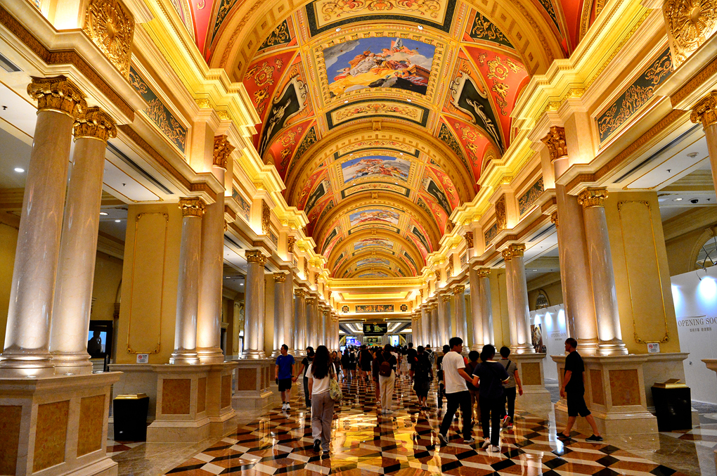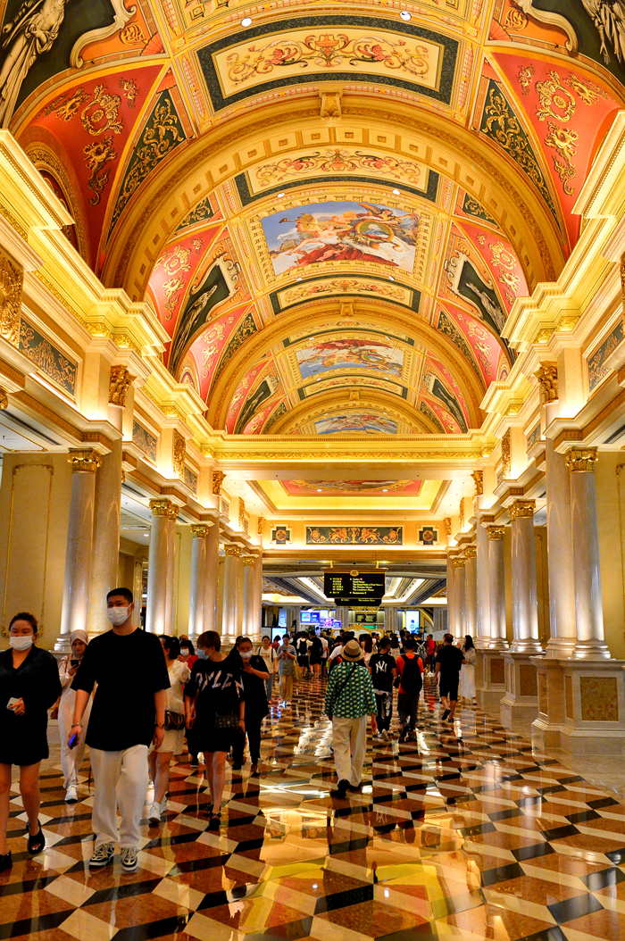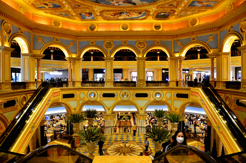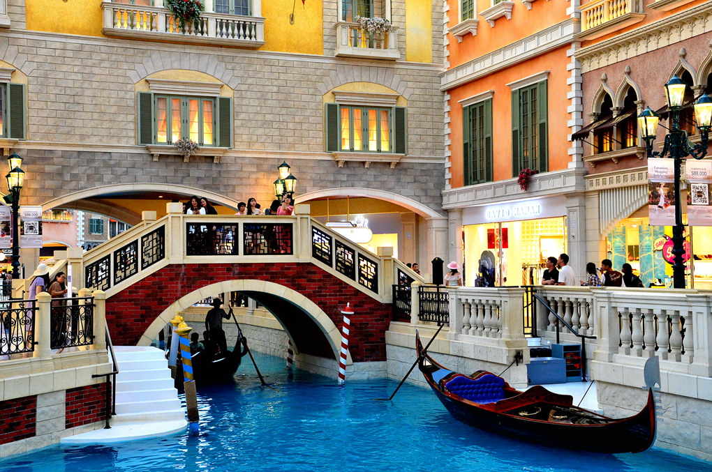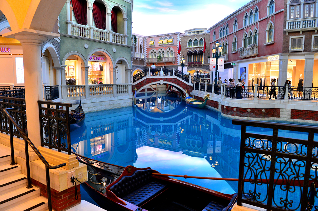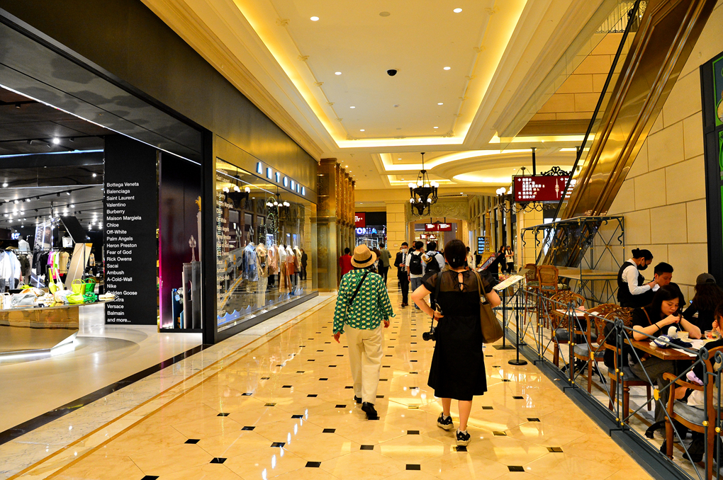베네시안 마카오 The Venetian Macau 호텔의 통로 주변에 늘어선 다양한 명품 샵들 모습이다.