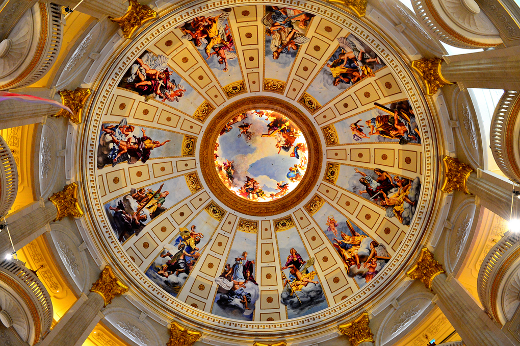 분수대 바로 위 로비 천장 모습이다.