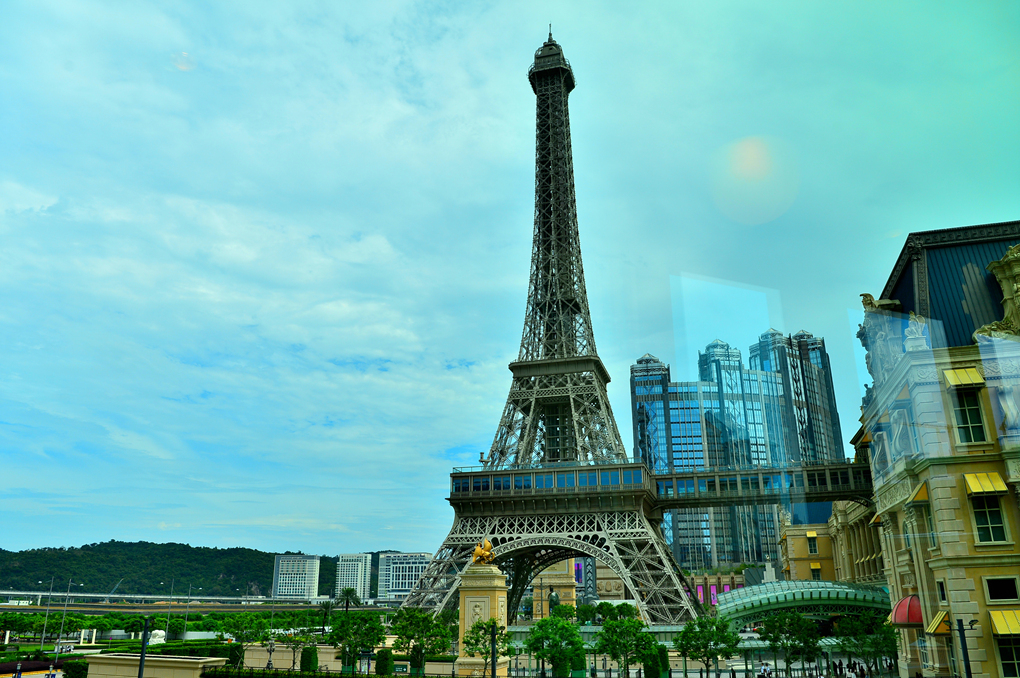 파리지앵 마카오로 연결되는 오버브리지에서 보이는 파리지앵 마카오의 상징 에펠탑이다.
