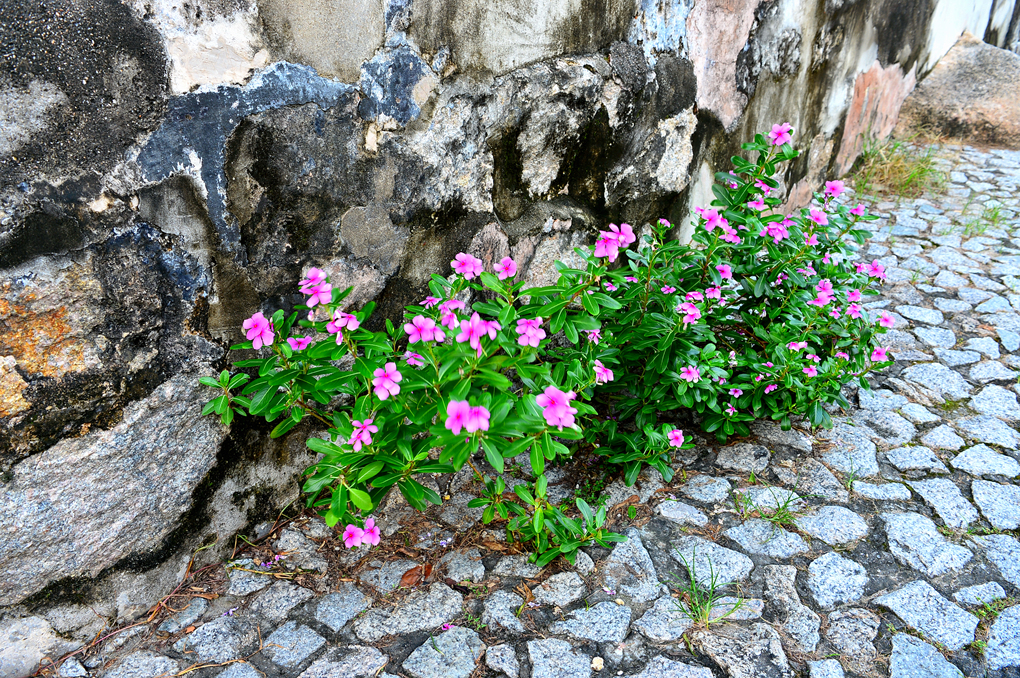 성벽 아래의 척박한 곳에서도 아름다운 꽃을 피우고 있는 모습이 경이롭다.