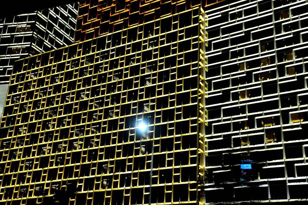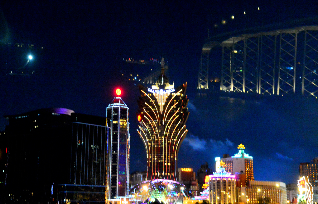 MGM 마카오로 가는 길목에서 본 그랜드 리스보아와 윈 마카오 호텔 모습이다.