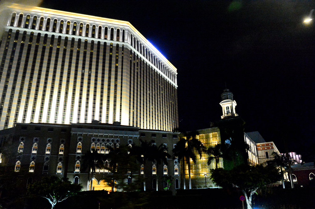 MGM 마카오 셔틀버스장을 나서면서 본 마카오의 호텔들 모습이다.