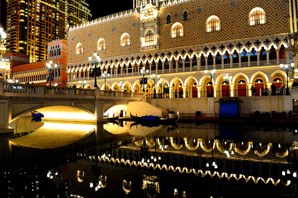 운하 주변의 베네시안 마카오 건물들이 만들어 내고 있는 야경들이다.