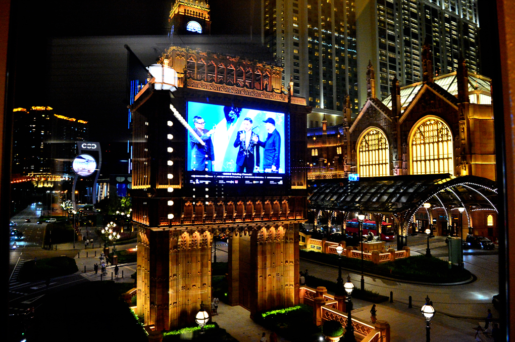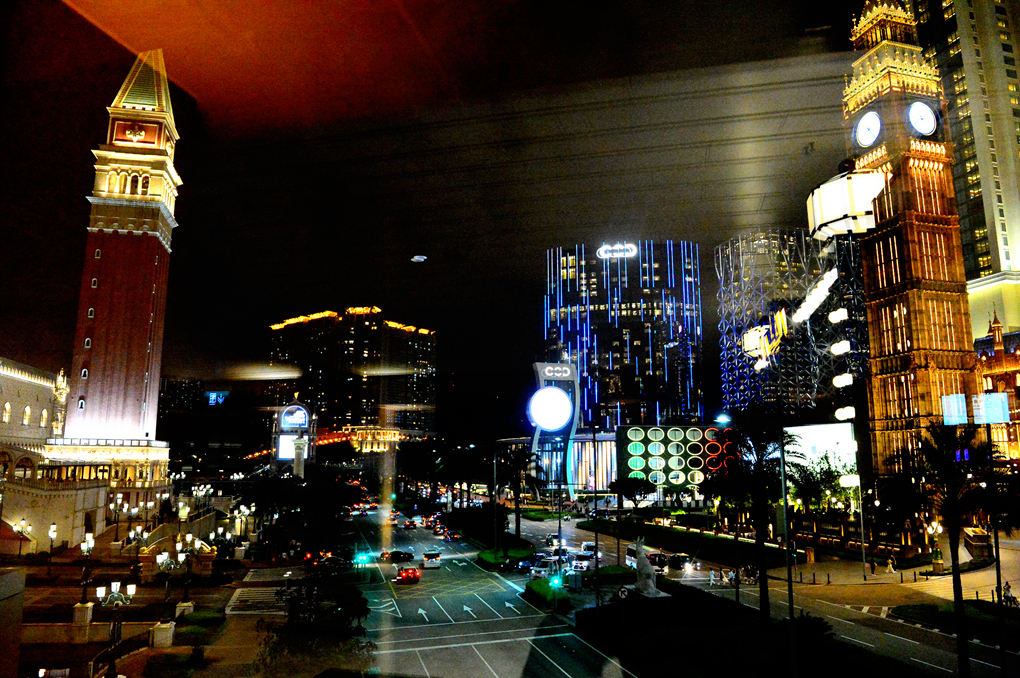 우리가 묵었던 객실 창 너머로 보이는 갤럭시 마카오를 시발점으로 시작한 호텔 야경 투어는 어느덧 반 정도를 넘어