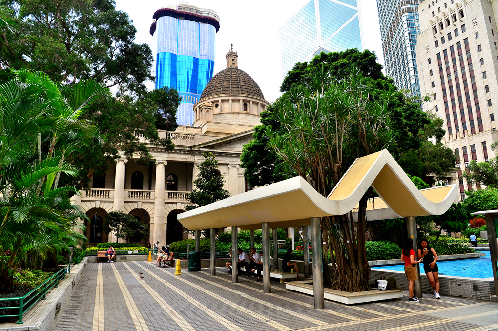 주변의 높은 빌딩들에 둘러싸인 이곳에 영국 빅토리아 여왕의 동상이 있었던 데서 황후상 광장이라는 명칭이 유래