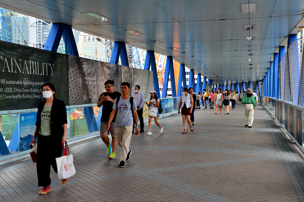 센트럴 스타페리 선착장에서부터 시작되는 오버브리지에 오른 모습이다.