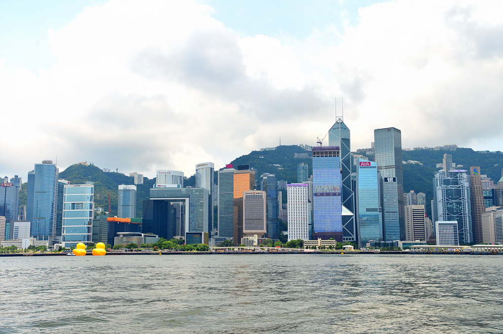 해변으로 늘어선 홍콩섬의 고층 건물들인데, 흐린 날씨 탓에 쨍한 모습은 보여주질 못하고 있다.