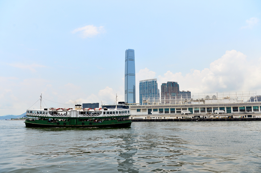 홍콩섬을 떠나서 침사추이로 향하는 스타 페리 모습도 보인다.