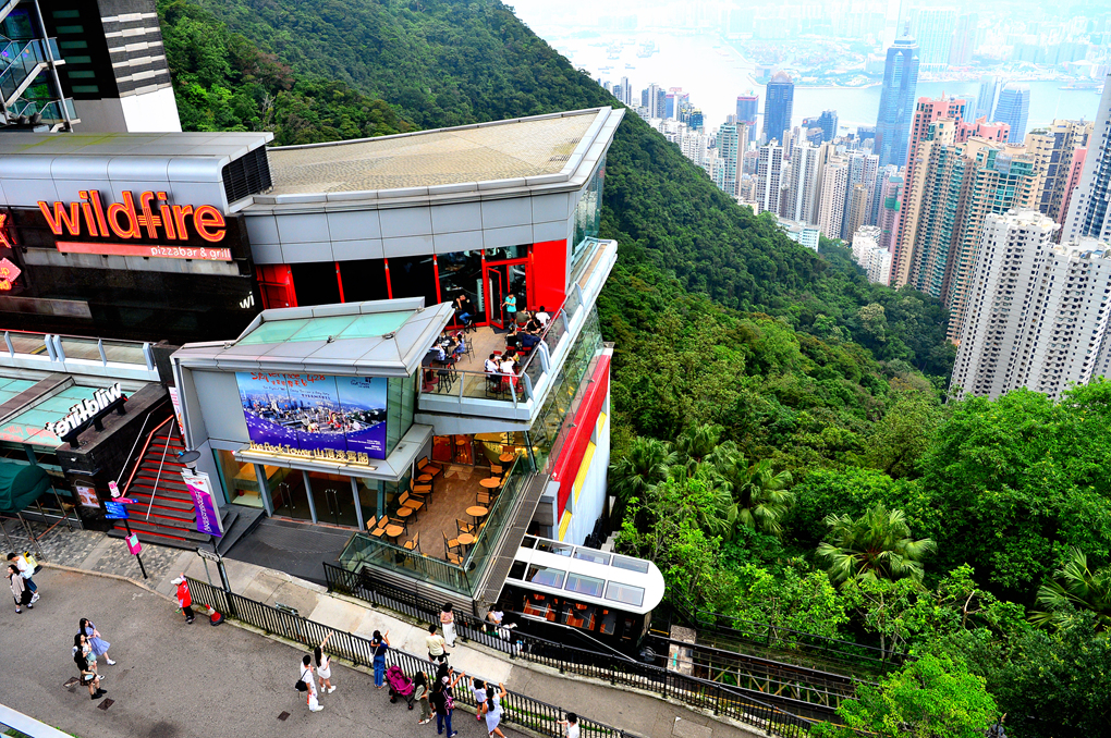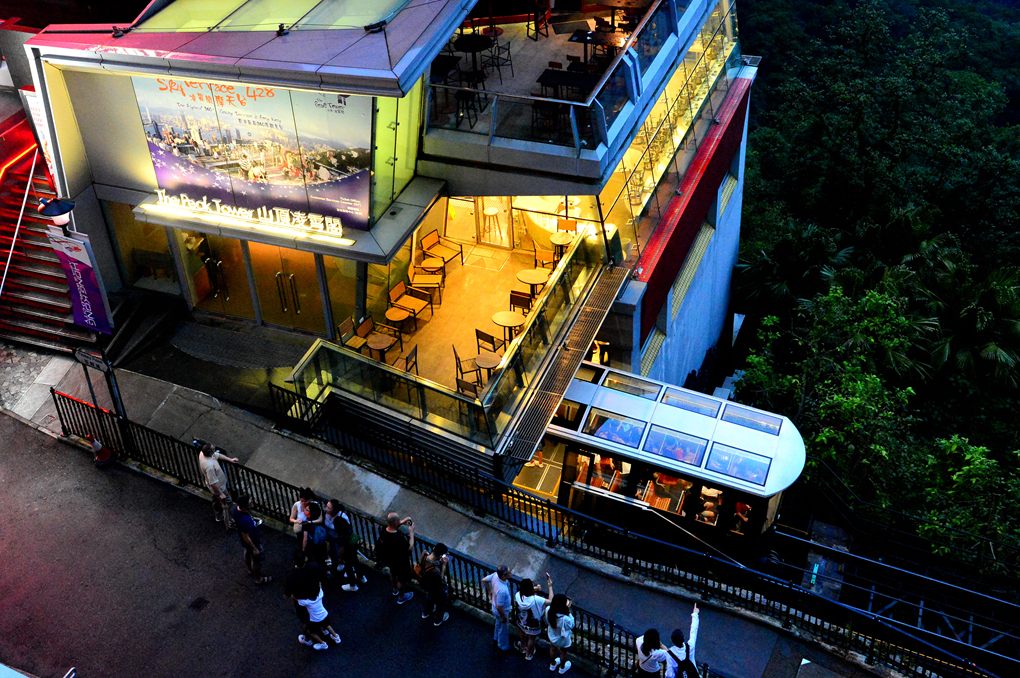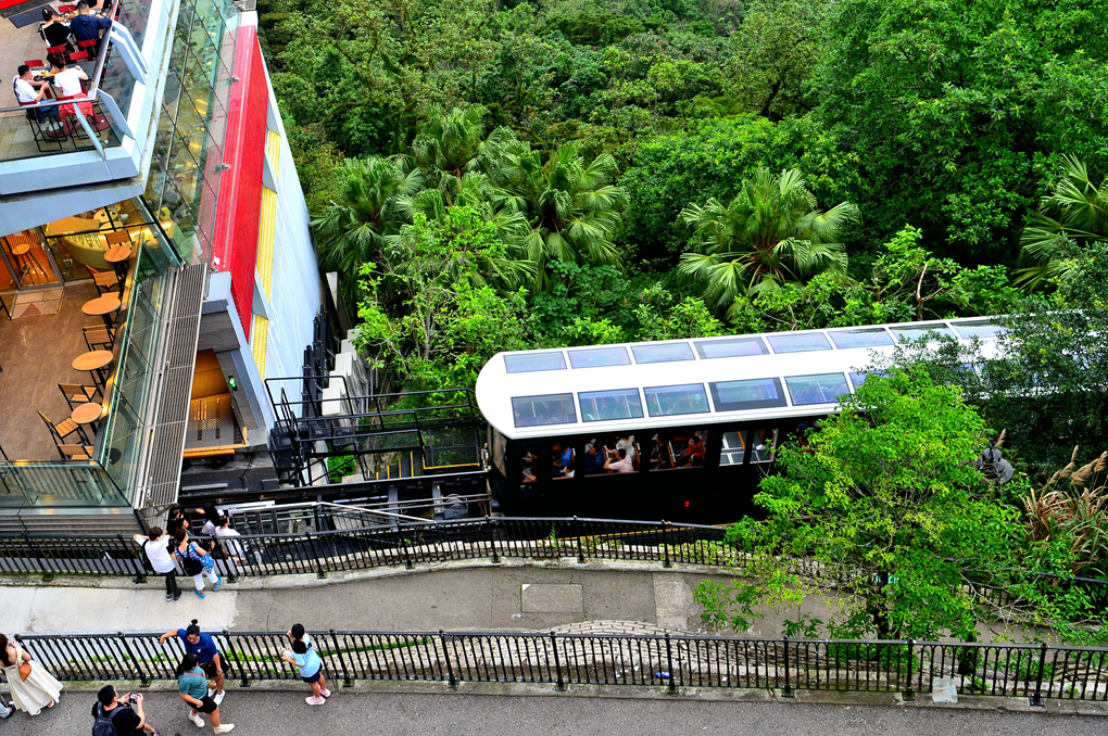 피크 타워로 오르는 피크 트램의 행렬은 계속 이어진다.