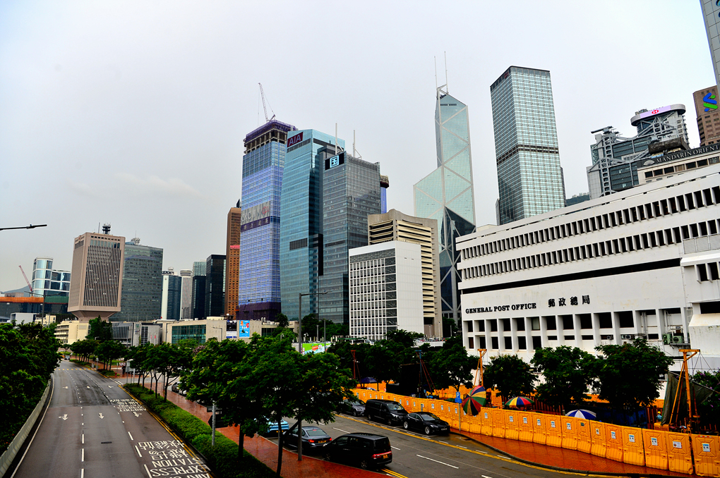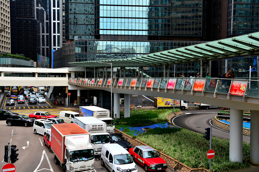 홍콩역과 IFC 옆을 지나는 도로 모습이고~