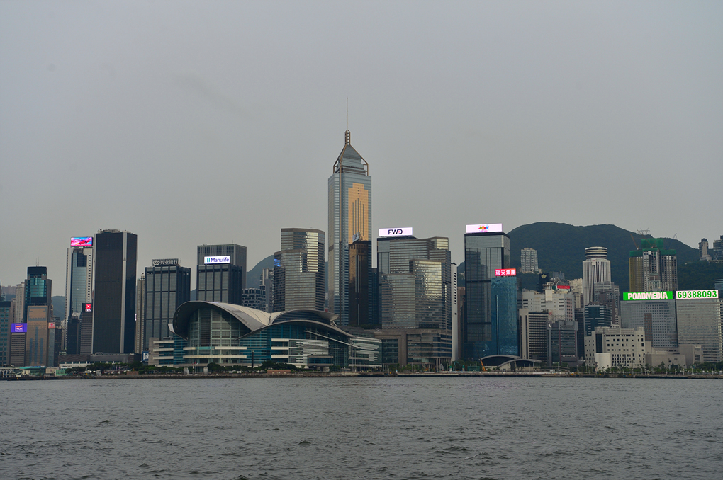 중앙에 나지막하게 보이는 건물이 매립지에 지어 올렸다는 홍콩 컨벤션 센터고, 그 옆의 뾰족한 첨탑을 가진 건물이