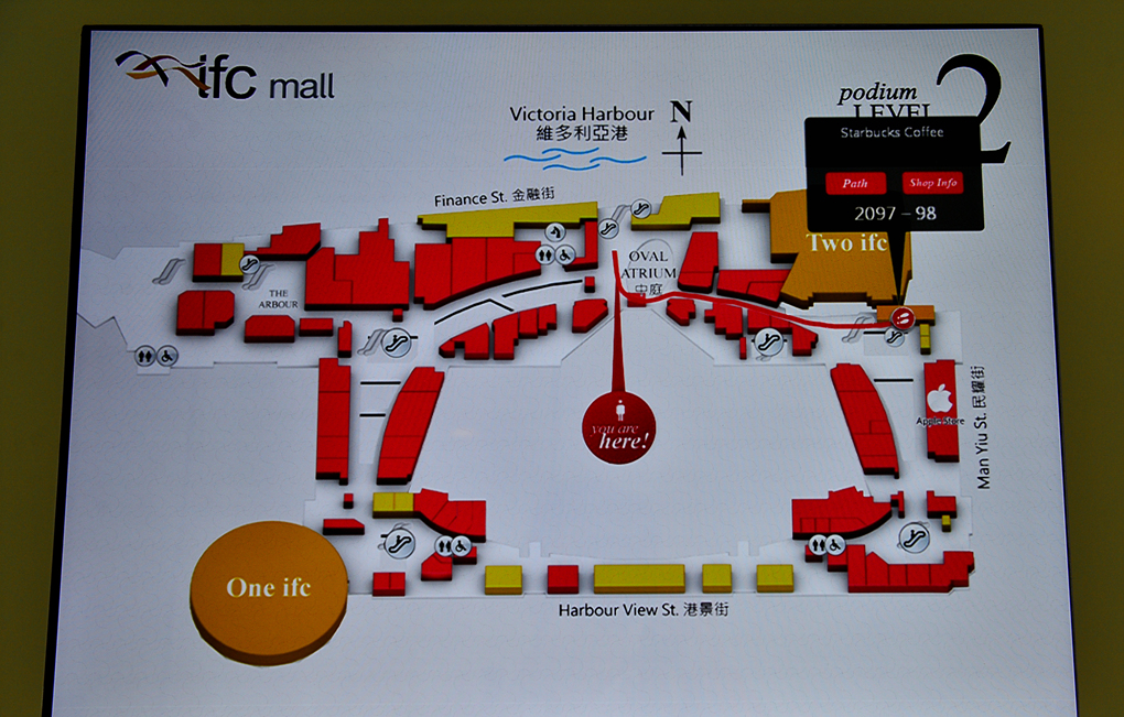 IFC 몰의 안내도와 중정 모습이다.