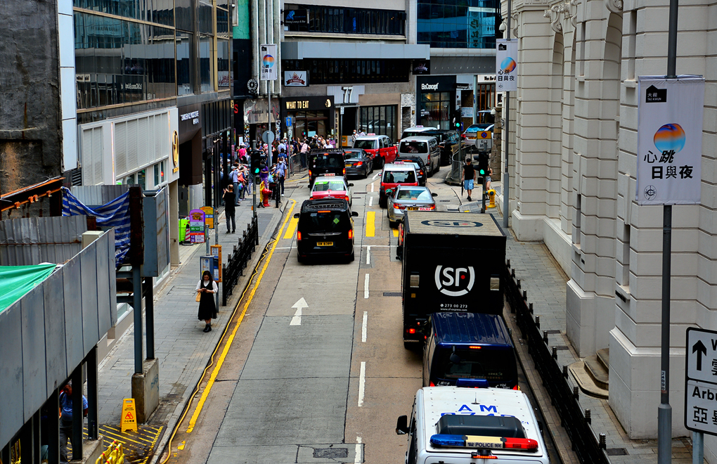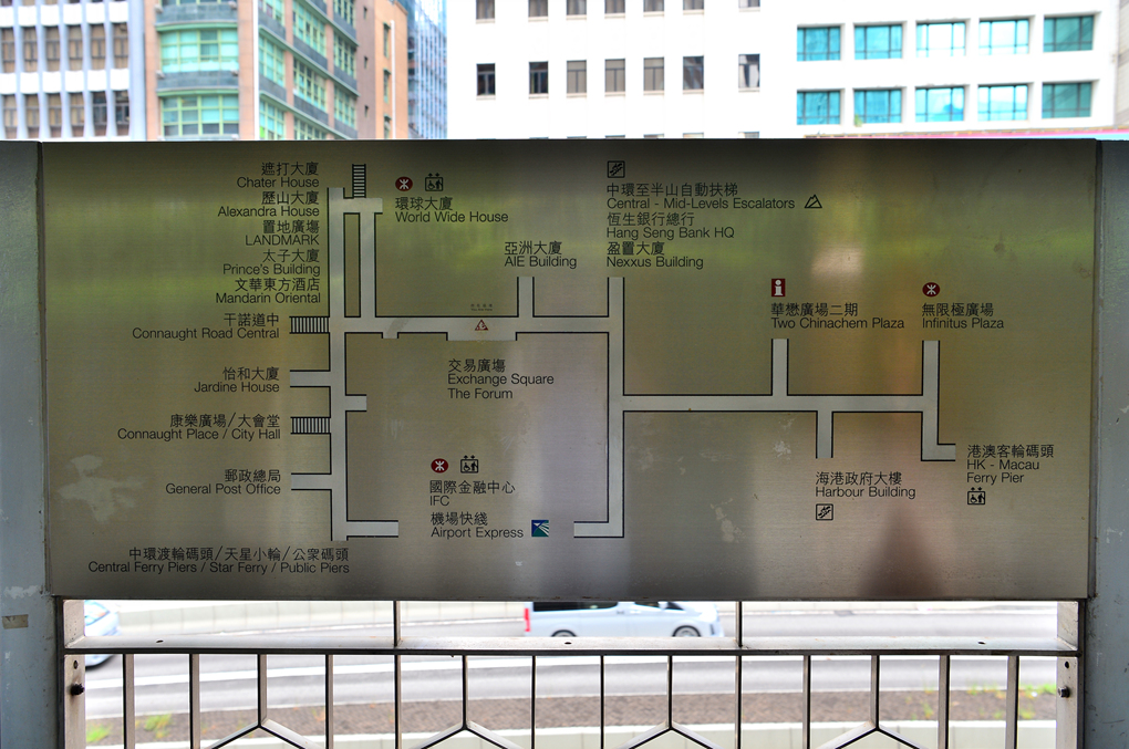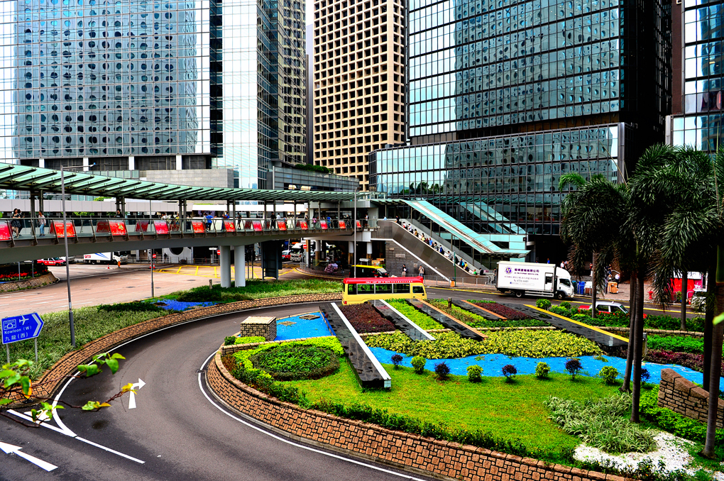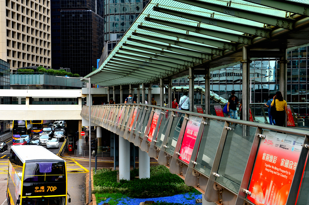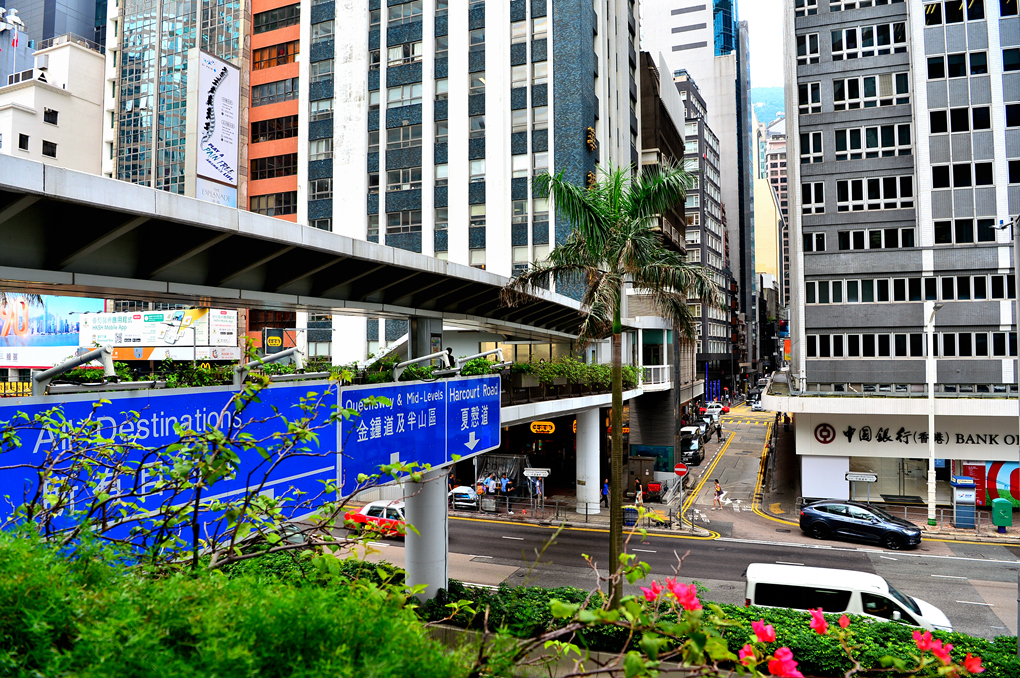 IFC 몰을 나서서 센트럴 스카이 워크 Central Sky Walk를 걸으며 본 홍콩섬 센트럴의 거리 풍경이다.
