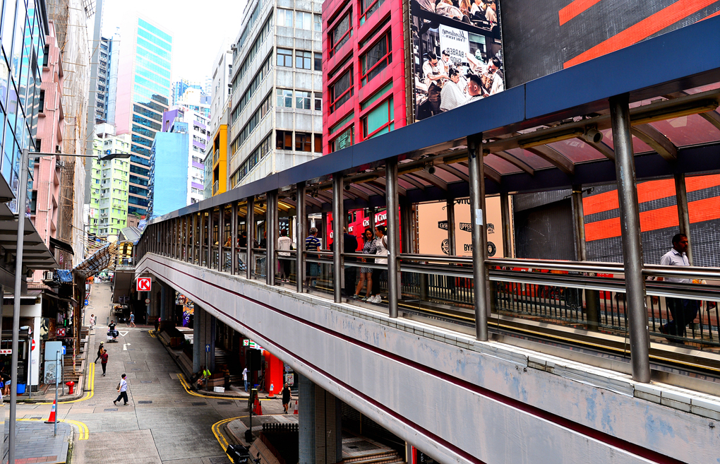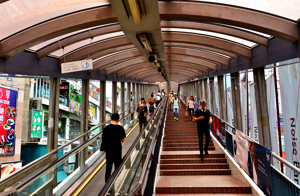 센트럴 번화가 소호의 중추를 형성하는 세계 최장 옥외 에스컬레이터라는 이 미드레벨 에스컬레이터 Mid-level
