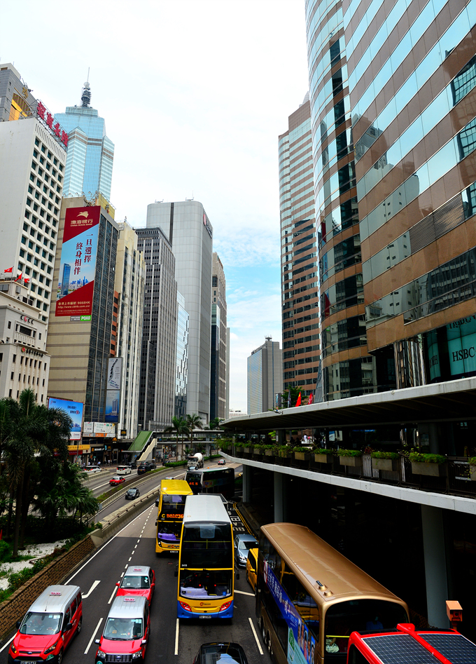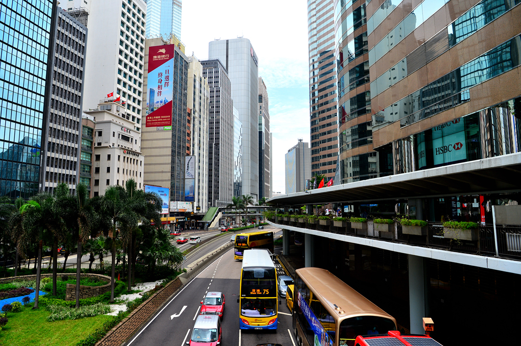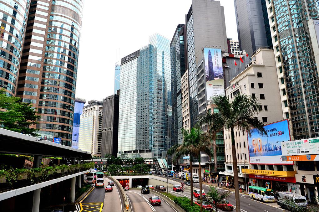 센트럴의 고층 빌딩들과 거리 모습이다.