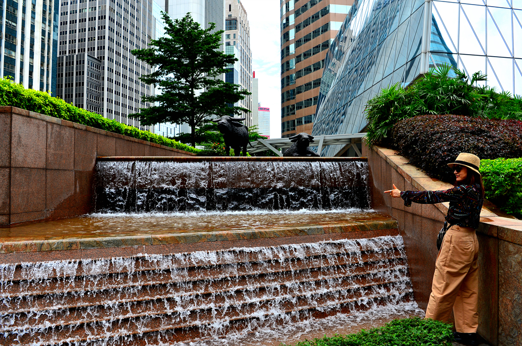 광장에는 작은 폭포도 마련해 놓았고, 여기저기에 각종 조각물들도 배치해 놓았다.