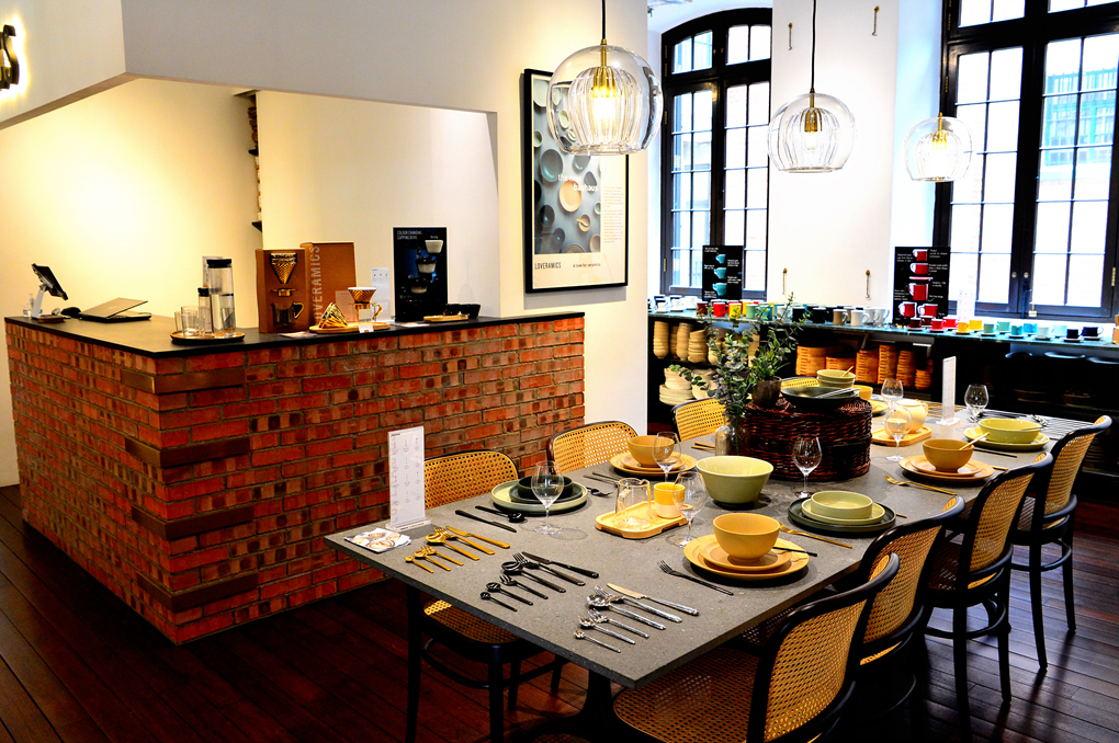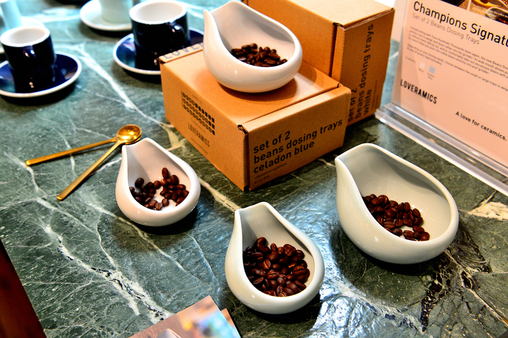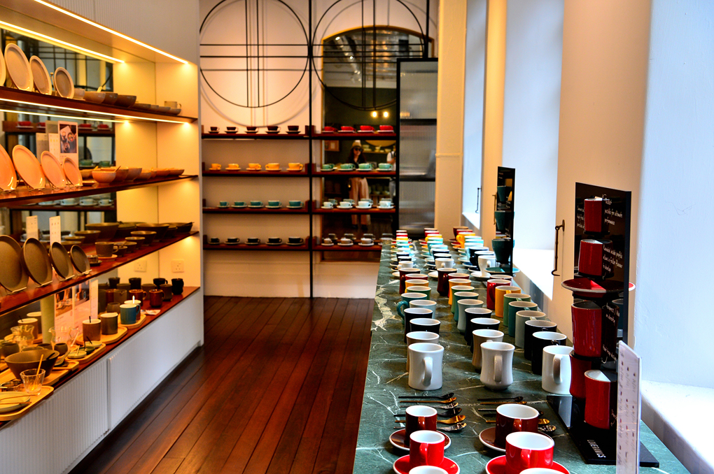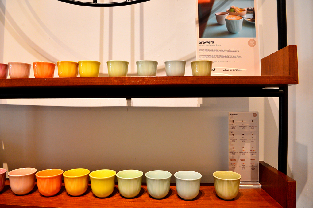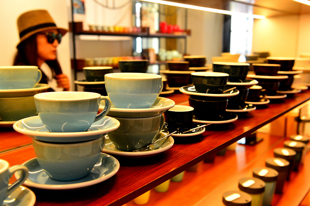 다양한 형태와 색깔의 커피 잔들이 눈길을 끈다.