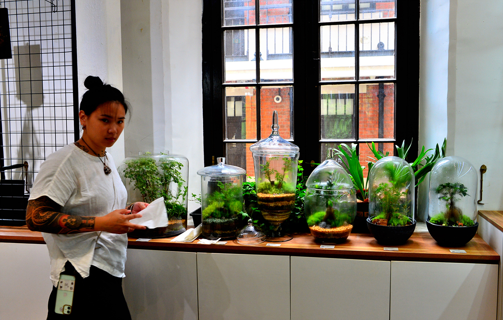 병 속에 수생식물을 담아 판매도 하고 있다.