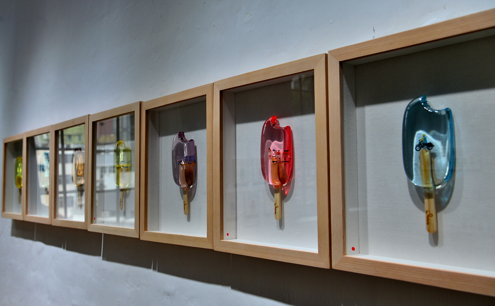 벽면 가득 비슷한 작품들을 진열해 놓은 모습이다.