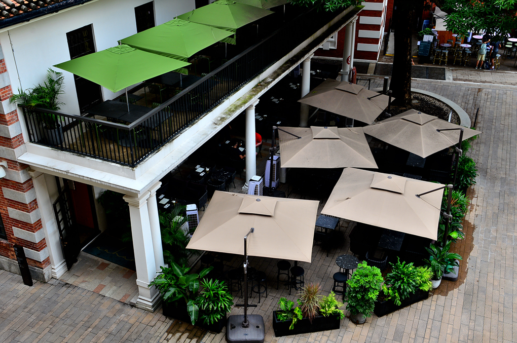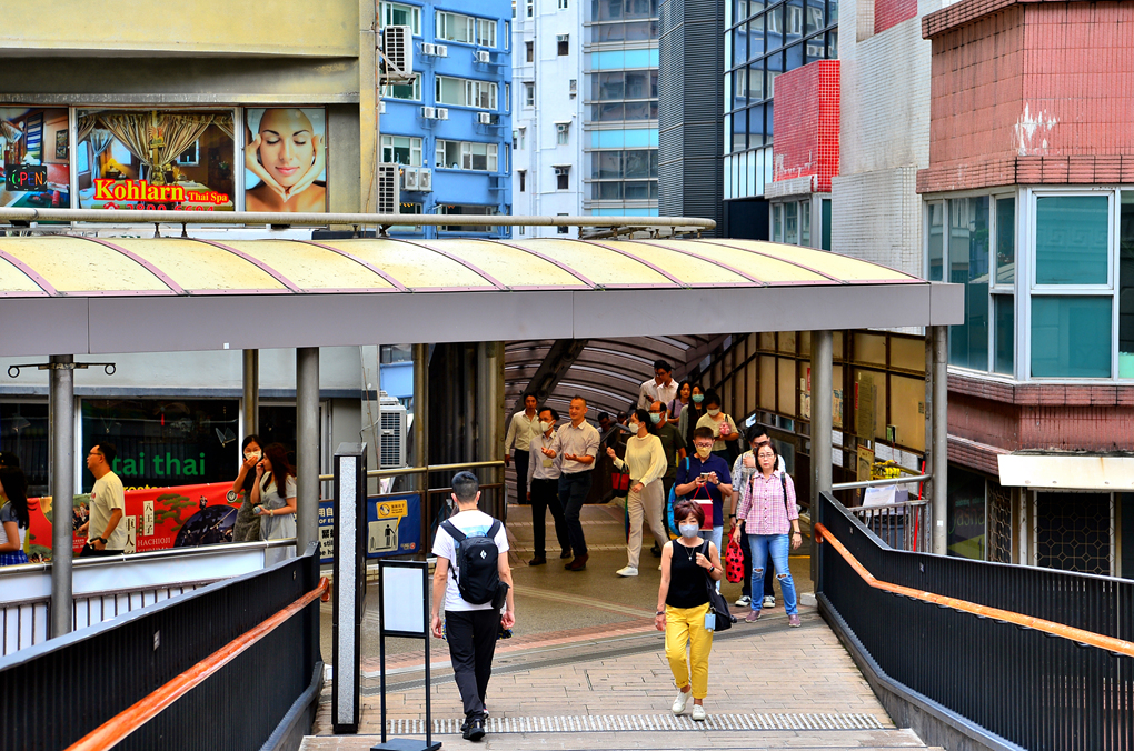 미드레벨 에스컬레이터에서 보이는 주변 상점과 거리 모습이고~