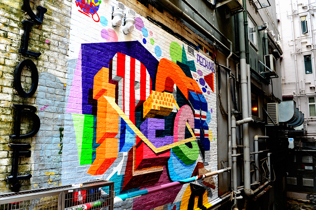 각종 파이프가 난무하는 좁은 골목의 화려한 벽화가 골목 분위기를 완전히 바꾸어 놓고 있다.