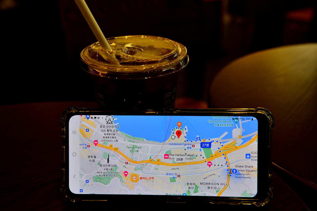 커피를 마시며 휴식을 취하면서 다음 행선지까지의 거리와 시간을 가늠해 본다.