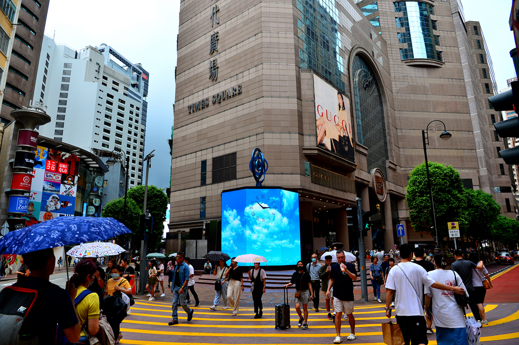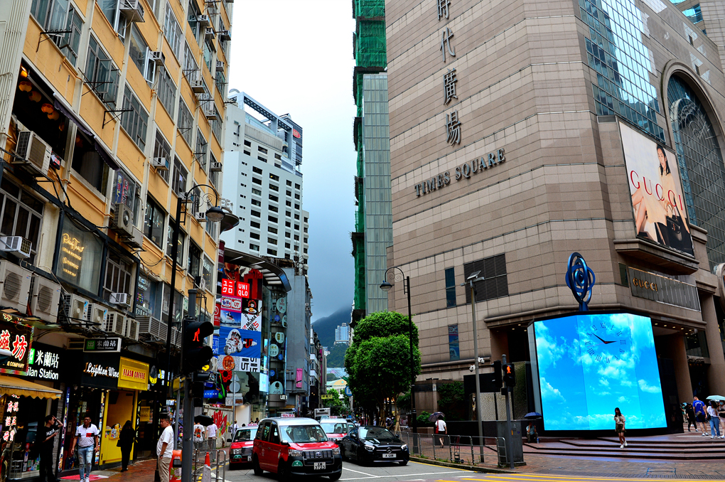 타임스 스퀘어는 바늘이 10시 10분을 가리키는, 시계 엠블럼으로 유명한 쇼핑몰로 규모 면에서 코즈웨이 베이