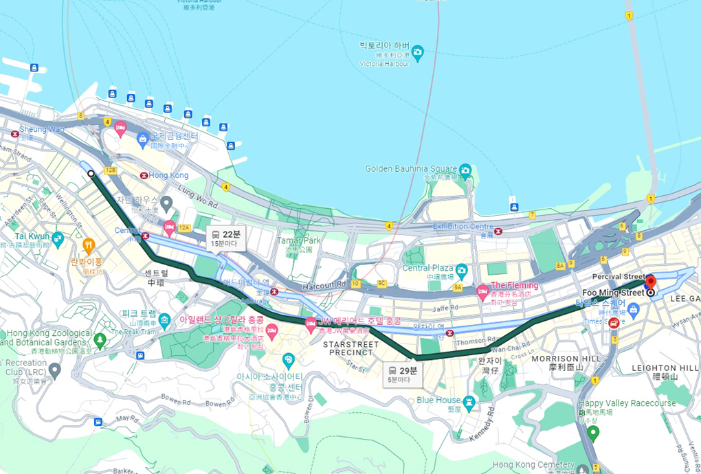해변과 나란히 이어지던 노선이 방향을 틀어 홍콩섬 내부로 들어가는 모양이니, 우리는 이쯤에서 트램에서